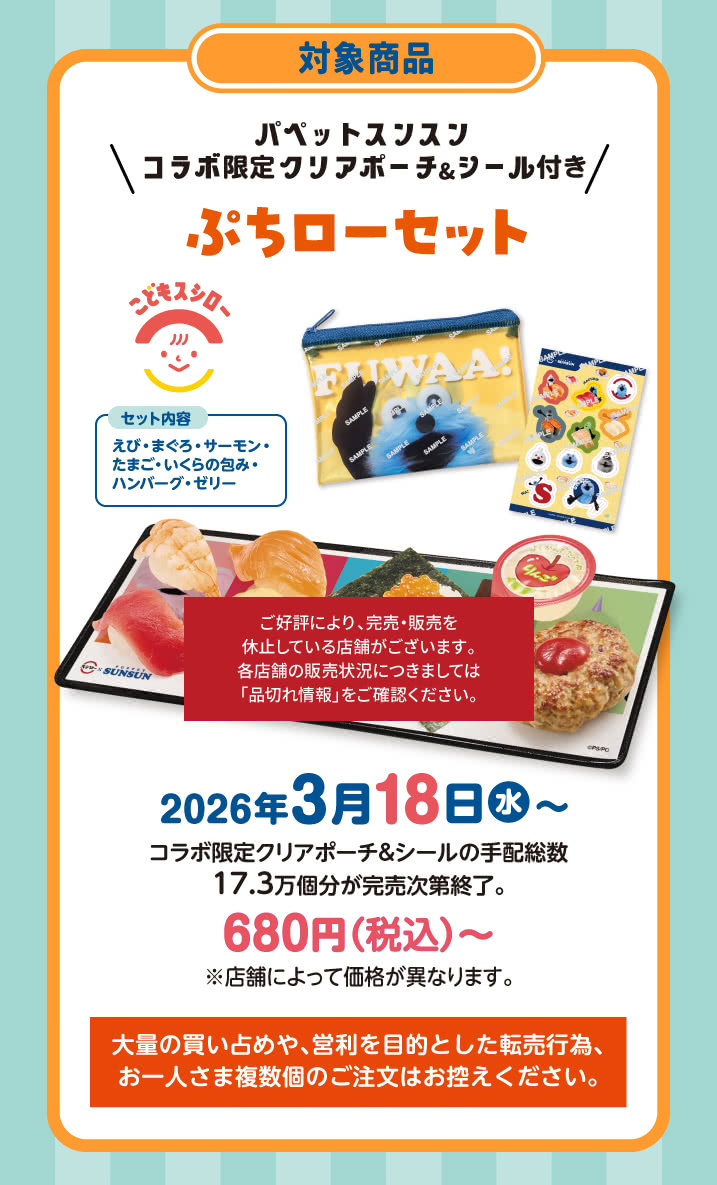 スシロー × パペットスンスン コラボキャンペーン『みんなでスシロー!』3/4(水)~