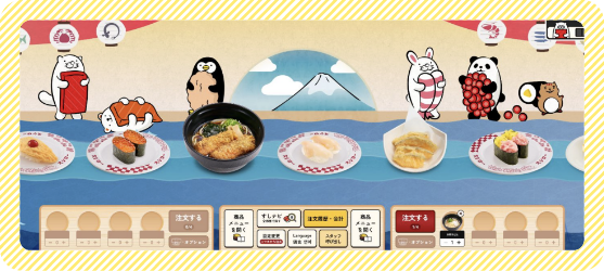 画面上に流れるおすしをタップして注文
