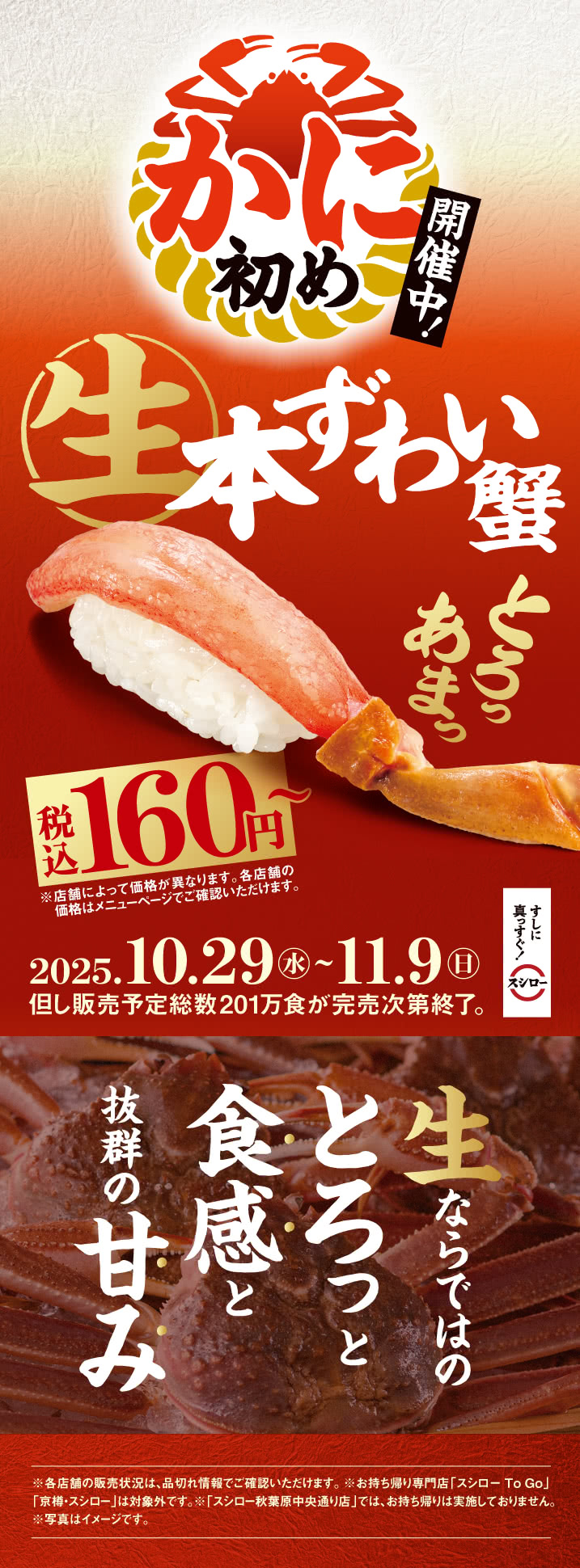 本キャンペーン期間中に、スシロー公式 X(旧Twitter)アカウント「@akindosushiroco」をフォローして、「かに初め&きまぐれクック」に関わる対象ポストをいいね&リポストしていただくだけで、抽選で10名様にお食事券1万円分が当たる!