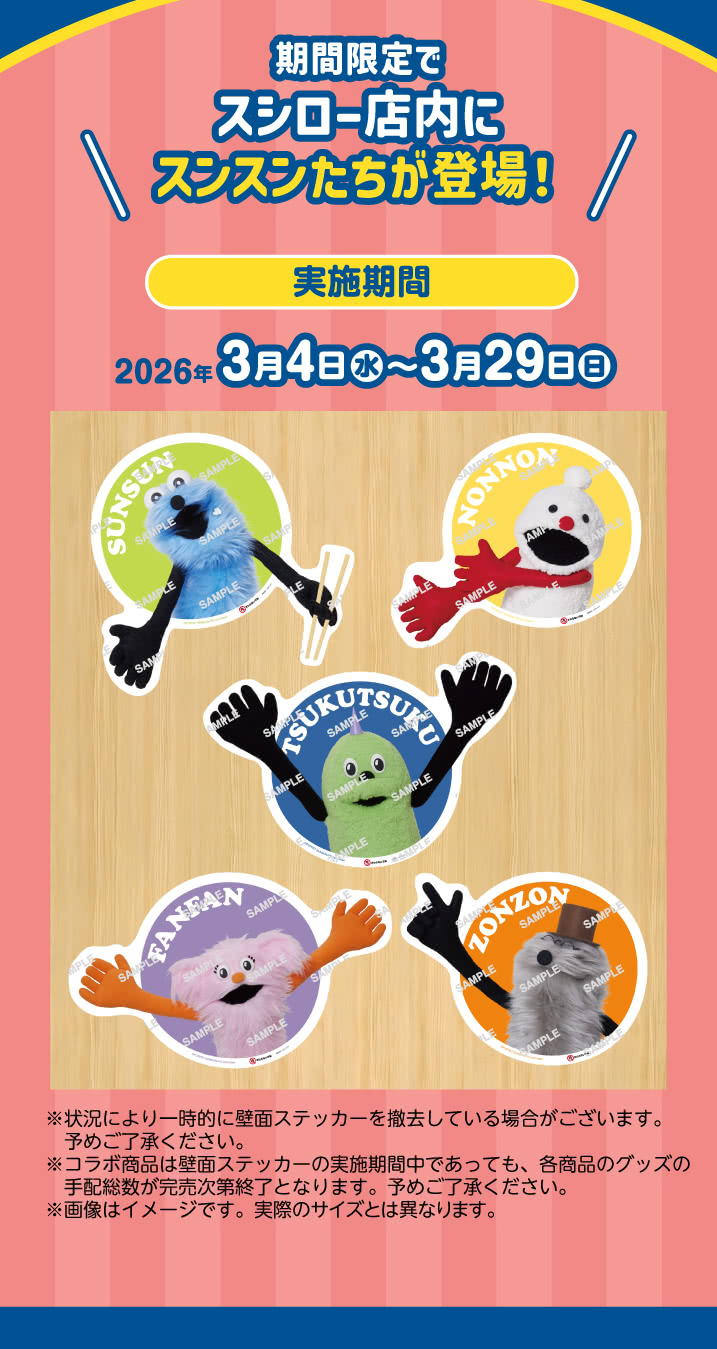 【予告】スシロー × パペットスンスン コラボキャンペーン『みんなでスシロー!』3/4(水)~