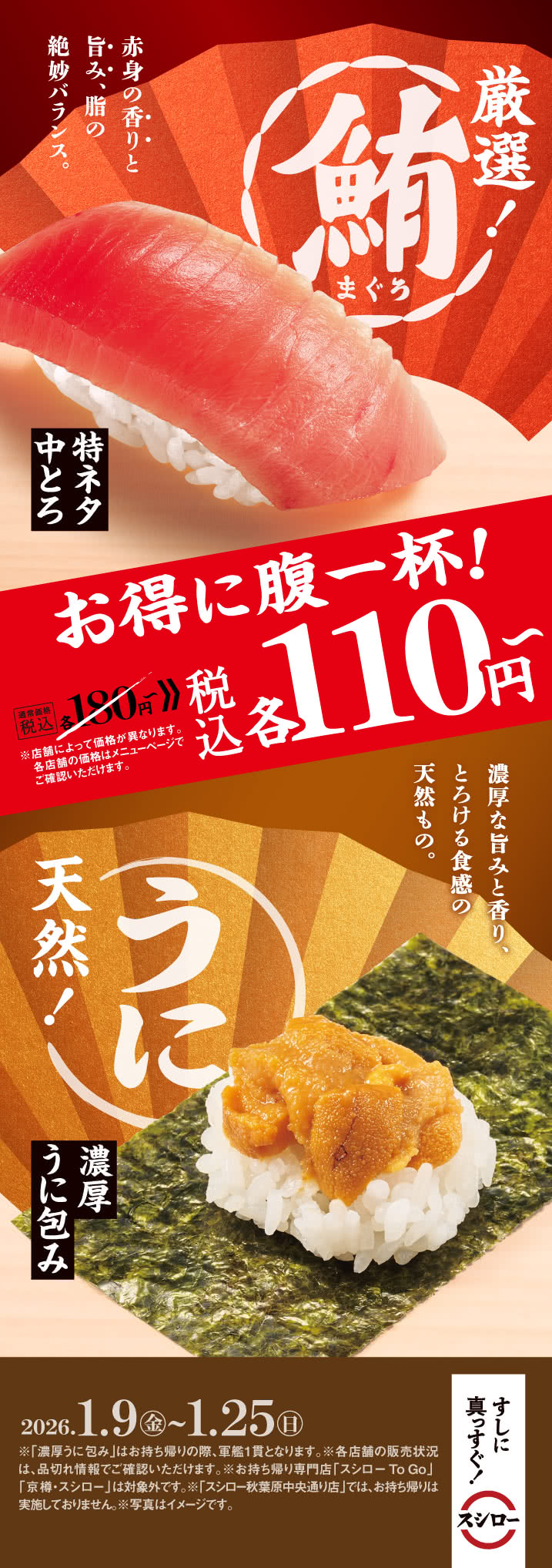 本キャンペーン期間中に、スシロー公式 X(旧Twitter)アカウント「@akindosushiroco」をフォローして、「特ネタ中とろ」「濃厚うに包み」「六福彩り盛り」に関わる対象ポストをいいね&リポストしていただくだけで、抽選で10名様にお食事券3万円分が当たる!