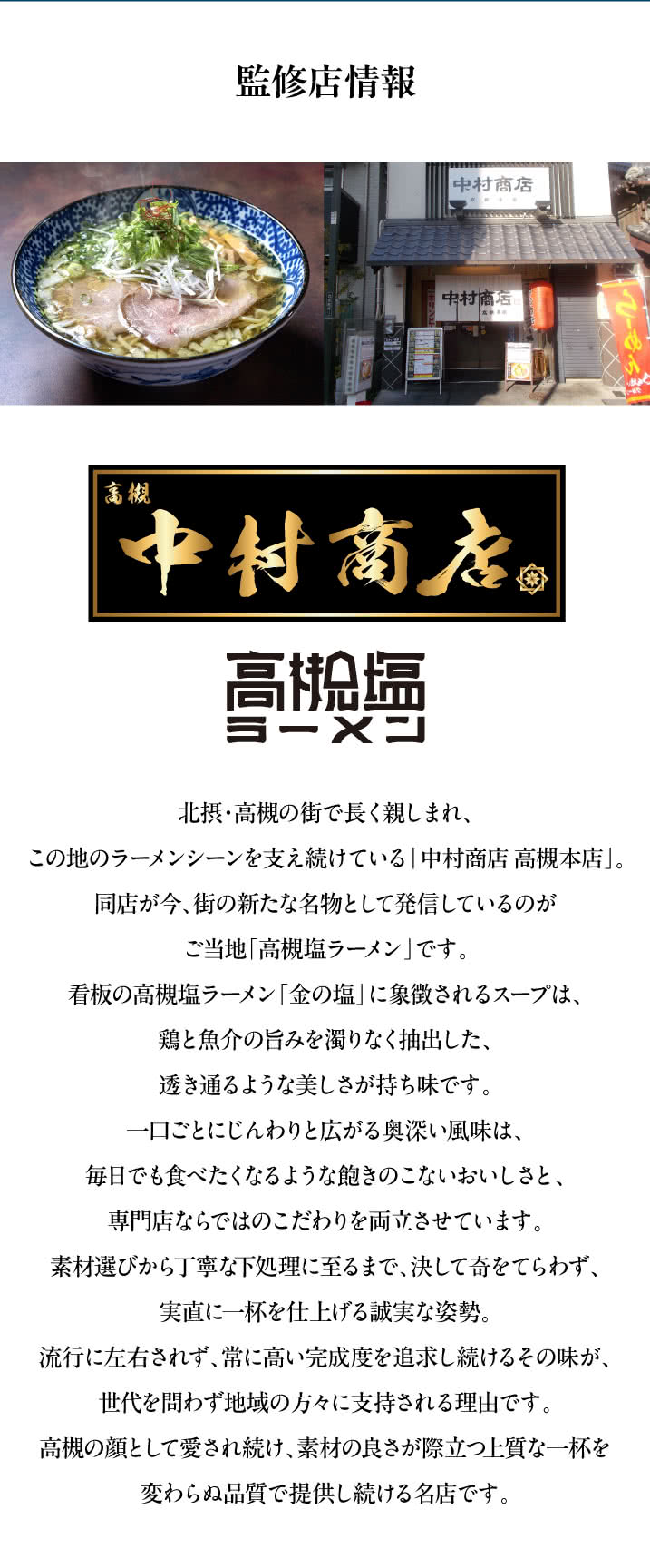 「中村商店 高槻本店」監修 香味清湯 塩らーめん